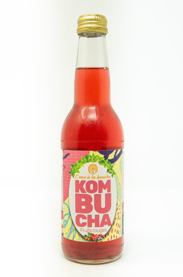 Eau de source filtrée, sucre de canne* (Brésil), Myrtille sauvage*, Framboise*, thé noir* et thé vert* (Les jardins de Gaia), culture de kombucha*